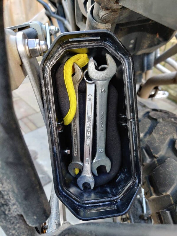 Aluminum mounting plate/bracket for a Givi S250 Tool Box customized to a Triumph Tiger 900 (2020 > 2023) (Rally Pro / GT Pro).